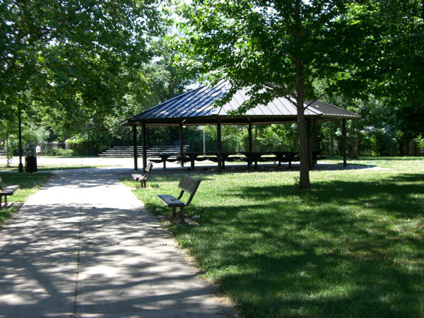 A view of the pavilion from one of the Fillmore Street entrances to the park.