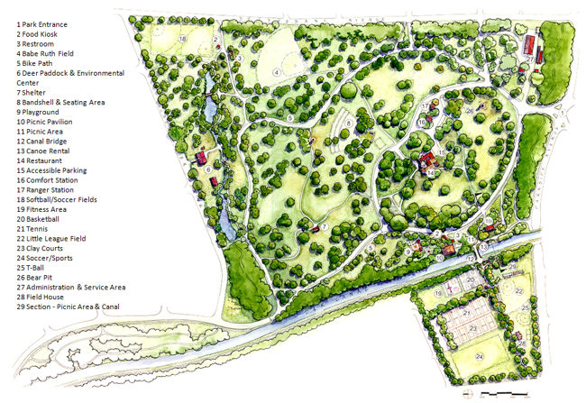 New facilities shown in these parts of the park make it desirable to once again link the upper and