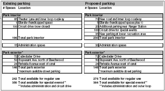 • Retain the Maple Avenue entrance for access and parking for park vehicles only.