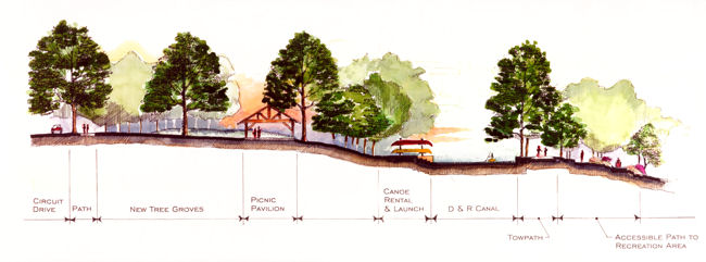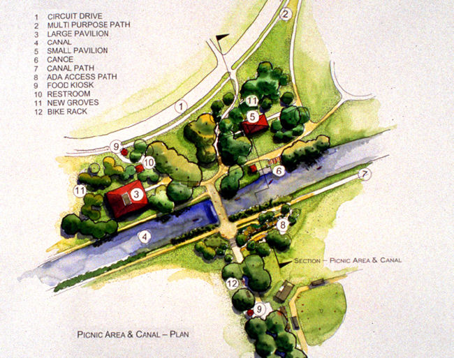 Figure 56. Detail plan & section- canal bridge and picnic area